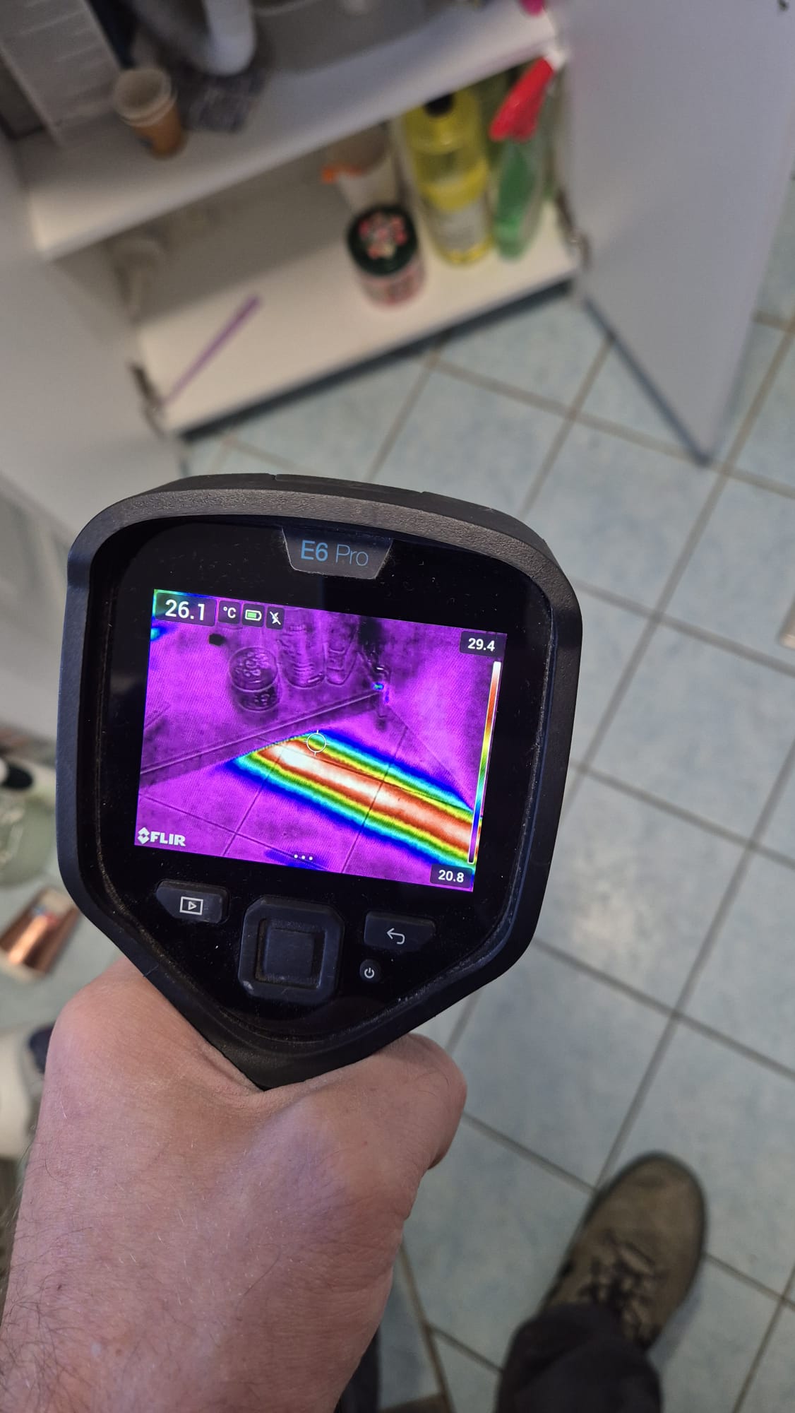 Koristimo najnoviju FLIR E6 PRO termovizijsku kameru za preciznu detekciju izvora curenja vode. Naša metoda omogućava pronalaženje curenja bez nepotrebnog rušenja zidova i keramike. Termovizijsko snimanje detektira razlike u temperaturi koje ukazuju na mjesto curenja.